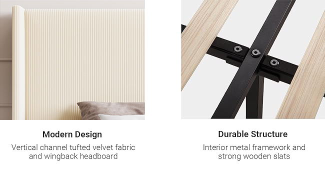 Verdict:Exceptional- ✓Vertical channel tufted wingback headboard adds an elegant, luxurious bedroom accent